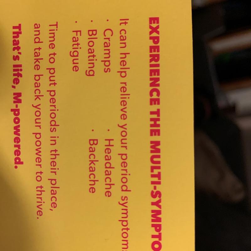 Take this medication by mouth, usually every 4 to 6 hours with a full glass of water (8 ounces/240 milliliters) unless your doctor directs you otherwise. Yes, you should definitely be okay. Recommended for both adults and children 12 years or older. Indicated for temporary relief of symptoms associated with menstrual periods. Just make sure you read the ingredients and not just the front of the box.